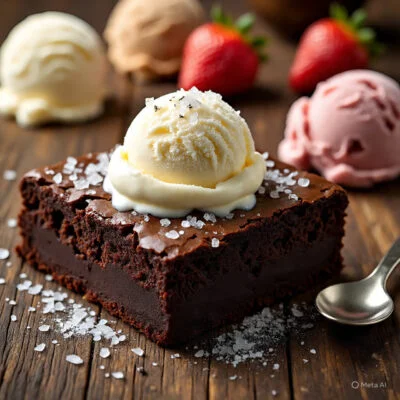 A rich, fudgy chocolate brownie baked to perfection. Warm, decadent, and perfect with ice cream.