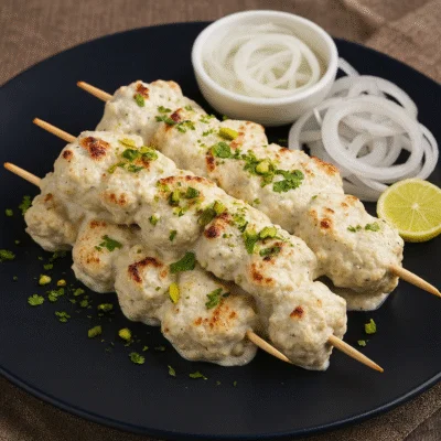 Soya chaap marinated in cream, cheese, mild spices, and herbs. Grilled until tender and smoky, offering a luxurious, creamy flavor profile.