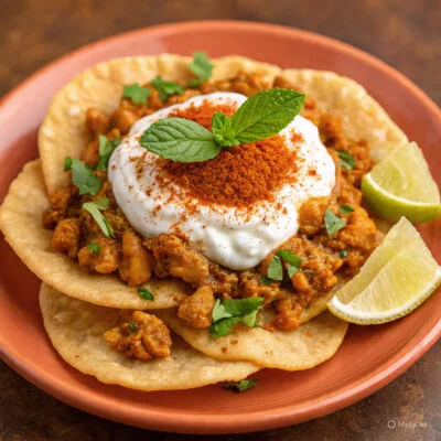 Crispy papdis layered with yogurt, tamarind chutney, mint sauce, and spices. A perfect balance of sweet, tangy, spicy, and crunchy.