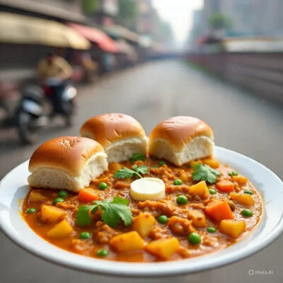 A buttery, mashed vegetable curry cooked with special Mumbai spices and served with toasted pav buns. Rich, aromatic, and irresistibly flavorful — the ultimate Indian comfort street food.