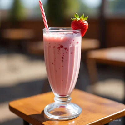 Sweet and fruity shake made with strawberries and ice cream.