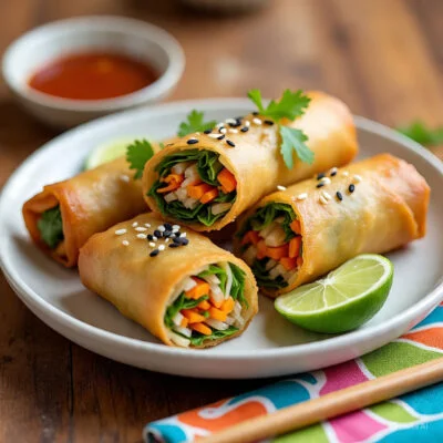 Crispy golden rolls filled with seasoned vegetables, noodles, and herbs. Fried to perfection and served with dipping sauces. Light, crunchy, and incredibly addictive.